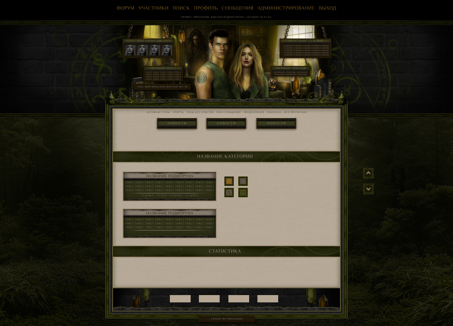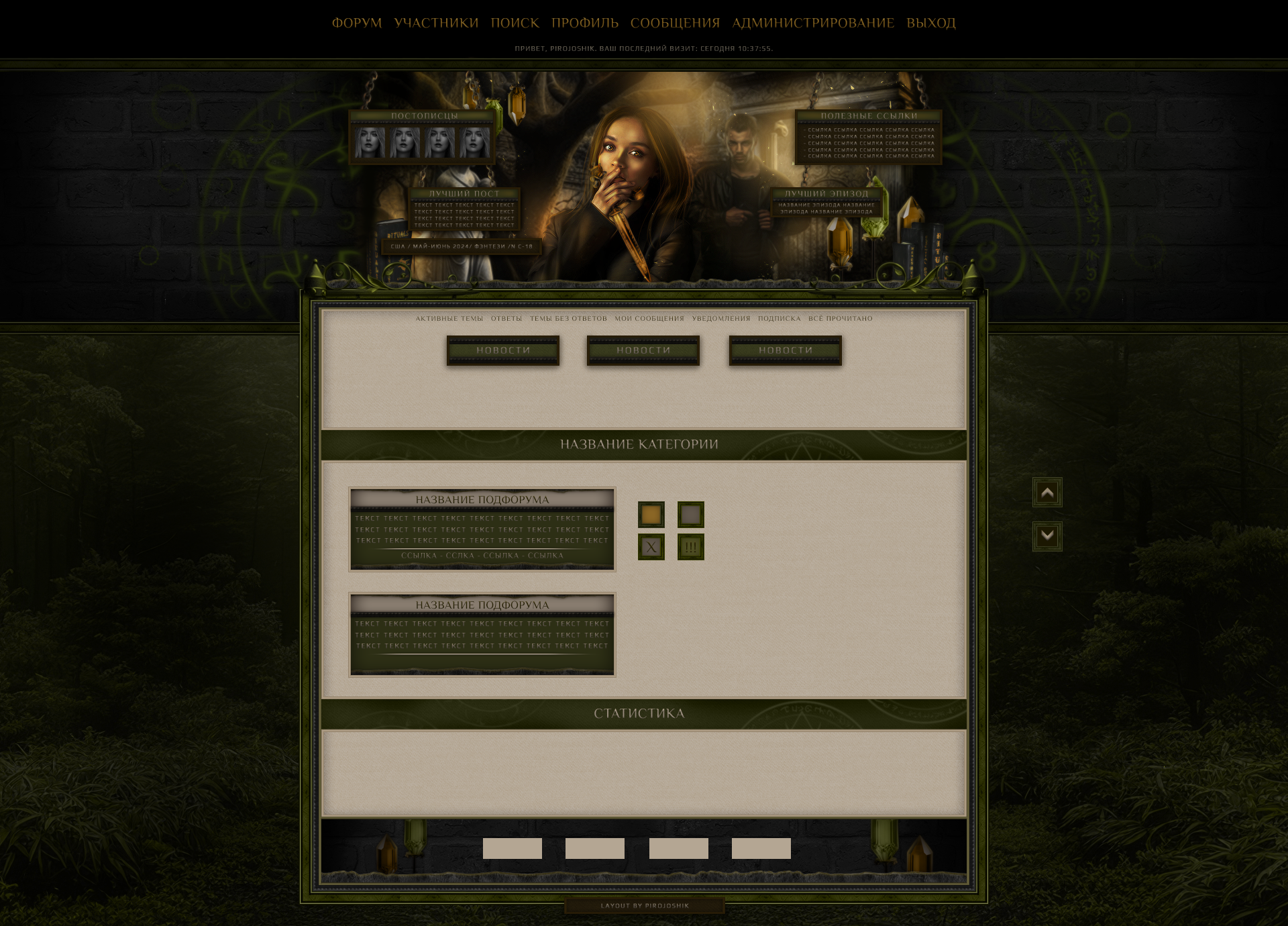Текст названий для подфорумов - шрифт Philosopher, цвет текста - #302a06